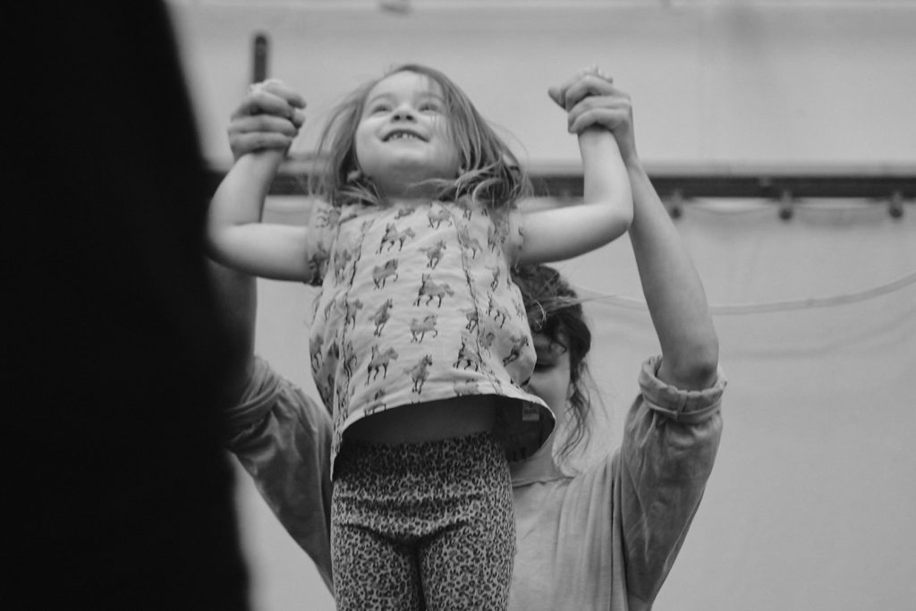 Für die Kinder ist es eine schöne Erfahrung ihren vertrautesten Bezugspersonen als Tanzpartner:innen zu begegnen, während ihre Kreativität und kinetisches Verständnis von den Aufgaben und der Gruppendynamik inspiriert werden.